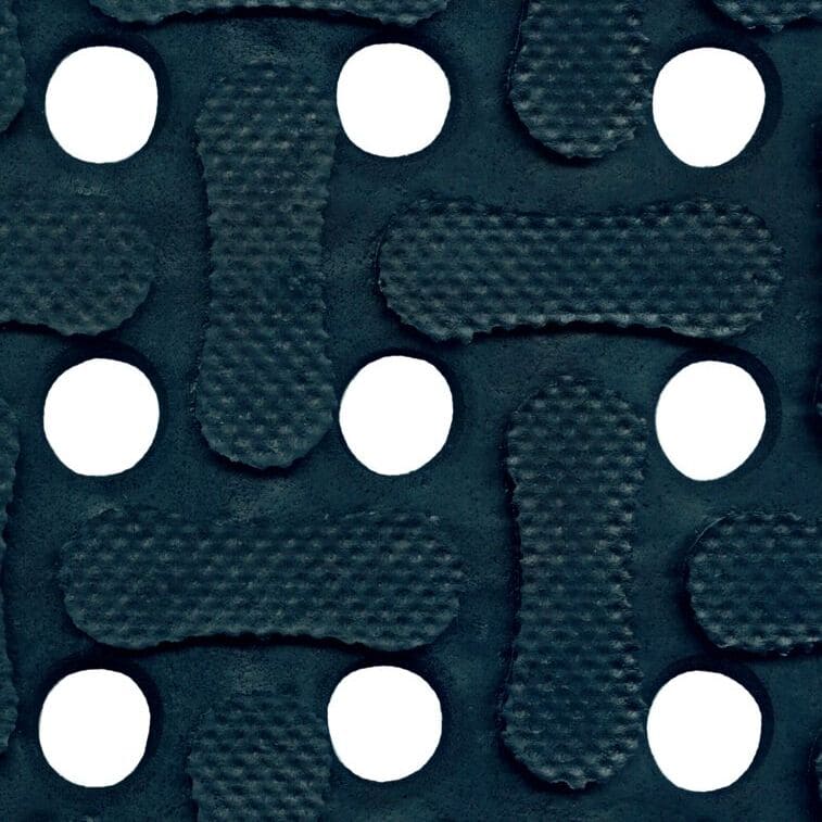 Clean: Drainagegaten laten vloeistof door; levenslange antimicrobiële behandeling voorkomt slechte geuren en degradatie van de mat.
