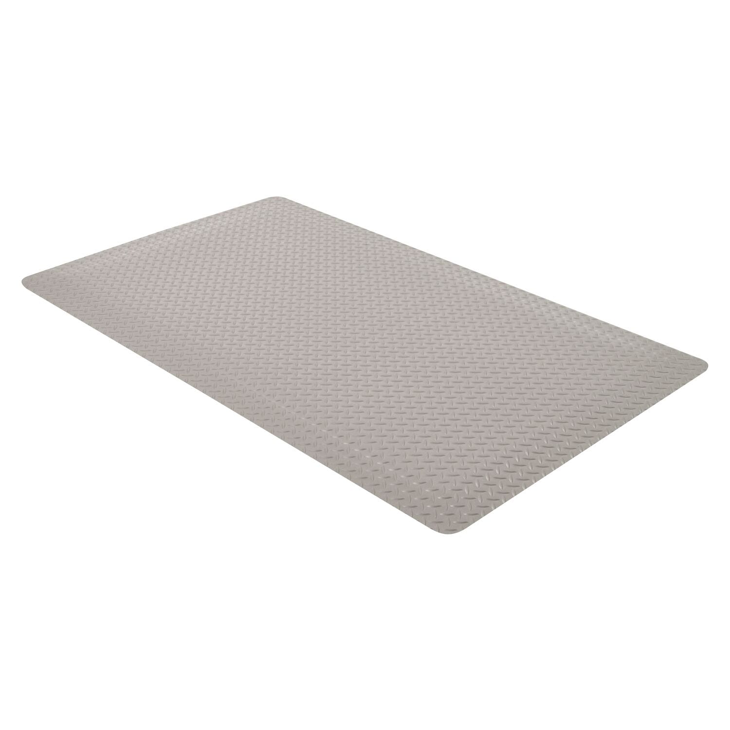 Ons bestverkochte anti-vermoeidheidsmat met een ergonomisch comfort door een 14 mm dik werkplatform met een PVC toplaag, zorgt voor maximale levensduur terwijl de veerkrachtige microcellulaire vinyl basis zorgt voor maximaal comfort. Het diamantplaat-motief biedt grip wat zorgt voor een grote bewegingsvrijheid. Het ontwerp en de materiaalsamenstelling maken dit de meest veelzijdige mattenoplossing voor vermoeidheidsverlichting in zowel statische als dynamische werkposities. Slipweerstand R10 volgens DIN51130 en BG-norm BGR181. Getest en gecertificeerd door het National Floor Safety Institute (NFSI). Bevat een RedStop™ antislip onderlaag die het wegglijden van de mat verhindert. Leverbaar met gele waarschuwingsranden volgens OSHA code 1910-144. Rondom met afgeschuinde randen om struikelgevaar te vermijden. Uni-Fusion™ lamineertechnologie, ontwikkeld om aan de strengste eisen te voldoen. Dagelijks afvegen met een bezem Veeg of dweil (droog) regelmatig de bovenzijde en de onderzijde van de mat. De bovenzijde van de mat kan eveneens vochtig gedweild worden met een milde zeep/detergent.
