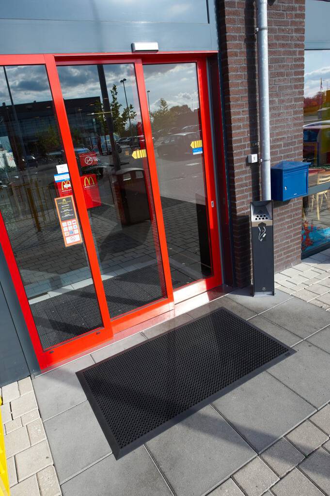 - Deze buitenmat is erg geschikt voor intensief loopverkeer door de duurzame samenstelling van het rubber.
